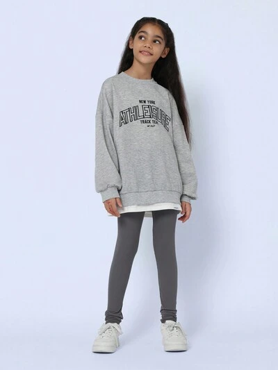 Tween Girls Comfy Grey Marl Oversized Fit Sweatshirt With Embroidered Pattern And Rib Legging 2 Piece Set-50%