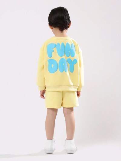 Yellow Sweatshirt And Shorts Set With Fun MessageZip Through Polo And Shorts Set