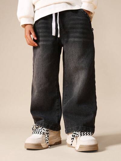 Wide Leg Pull On Jeans With DrawstringYoung Boys Cargo Denim Pull-On Elastic Waist Jeans