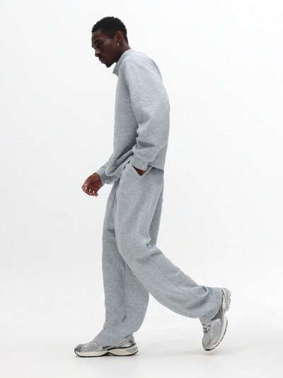 Quilted Pattern Quarter Zip Sweatshirt With Matching Pants-20%