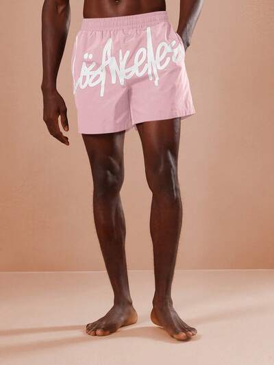Graphic Logo Comfort Fit Swimming Board ShortsNylon Board Shorts With Contrast Trim