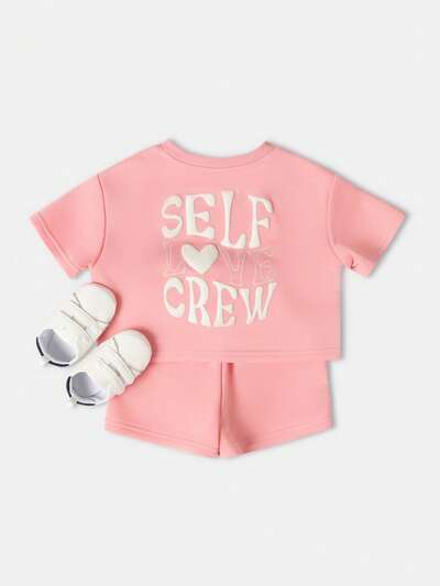 Cropped T-Shirt With Matching Shorts Self Love Heart Print-40%