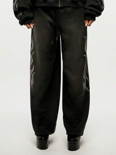 SUMWON WOMEN Oversized Flame Print Drawstring Wide Leg Comfort Sweatpants-50%