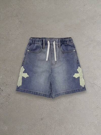 Premium Star Applique Raw Edge Mid Rise Denim ShortsWide Leg Cargo Jeans With Side Pockets