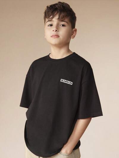 Boys Oversized City Names Graphic T-Shirt With Madrid Paris London Rio Print Short Sleeve Crew Neck Tee Summer Casual Streetwear , World CupOversized Ombre T-Shirt With Script Print