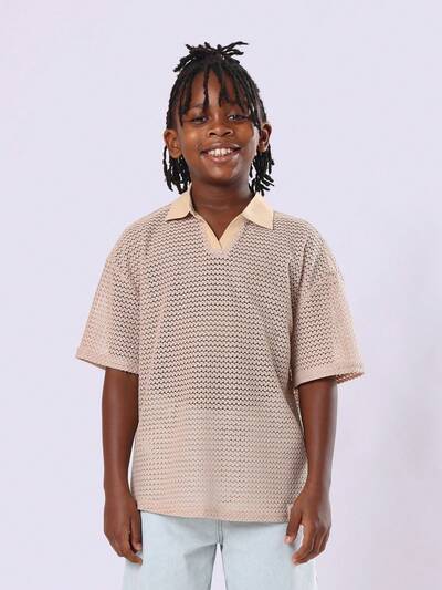 Tween Boys Oversized Varsity Print TeeClassic Polo Shirt With Button Placket