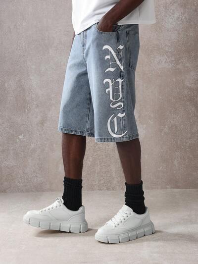Skater Loose Fit Printed Gothic Denim Shorts-50%