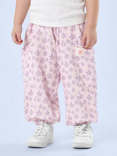 Double Cloth Floral Jogger Pants With Side Pockets-20%