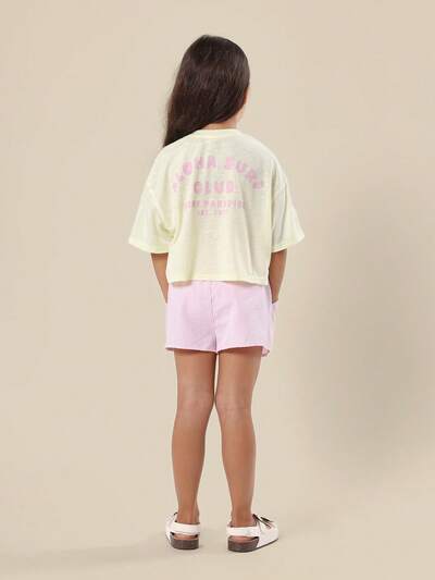 Girls Summer Fruit Market Tee And Striped Shorts Coord Set With Lemon PrintStriped Short Sleeve T-Shirt With Logo