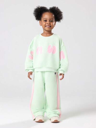 Mint Green Sweatshirt And Wide Leg Pants Set With Pink Text-20%