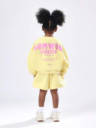 Crew Neck Sweatshirt With Matching Athletic Shorts Set-40%