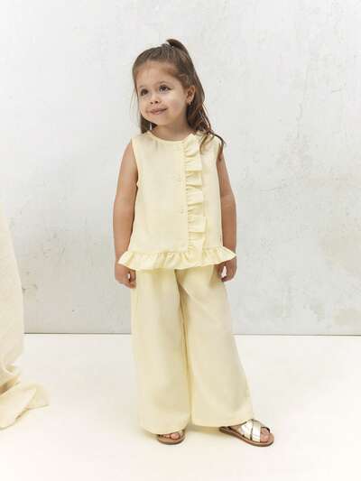 Girls One Shoulder Ruffle Tank Top And Palazzo Pants Co-Ord Set With Pink Purple Floral Print Summer Outfit