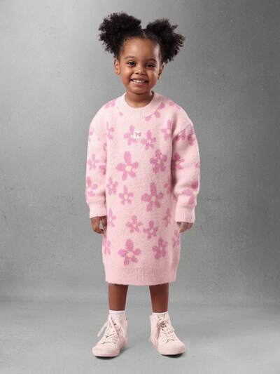Floral Print Knit Sweater Dress With Butterfly Patch-40%