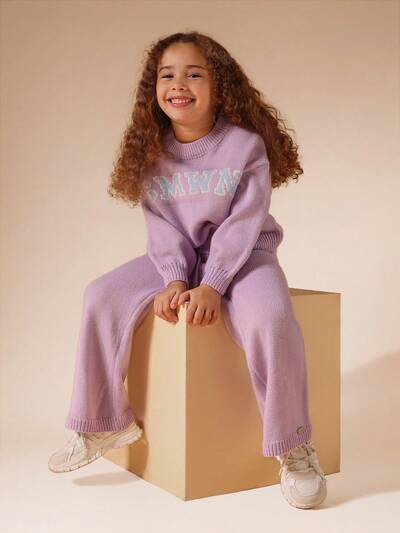 Ribbed Knit Sweater And Wide Leg Pants Set-25%