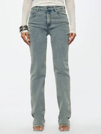 SUMWON WOMEN High Waist Straight Leg Stacked Denim JeansNEW