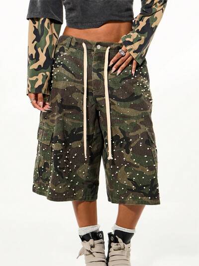 SUMWON WOMEN Camo Cargo Shorts With Pearl Rhinestones-15%