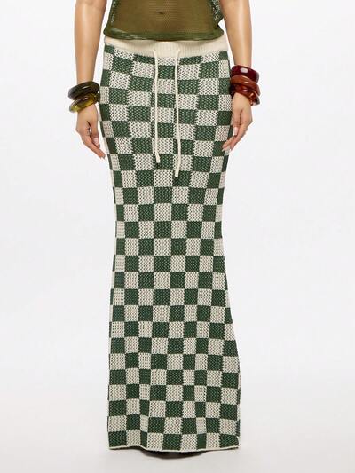 SUMWON WOMEN Crochet Knit Checkered Maxi Skirt-10%