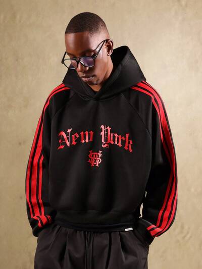 Gothic New York Typography Hoodie With Stripe Details-50%