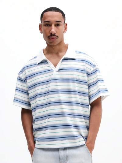 Striped Long Sleeve Polo With PrintStriped V-Neck Polo Shirt With Short Sleeves