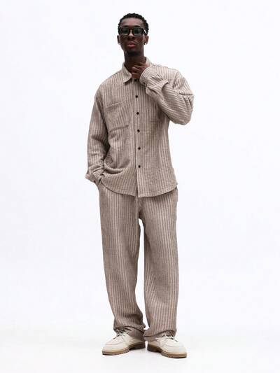 Textured Pinstripe Shirt And Pants Set