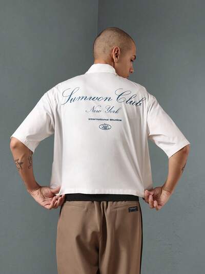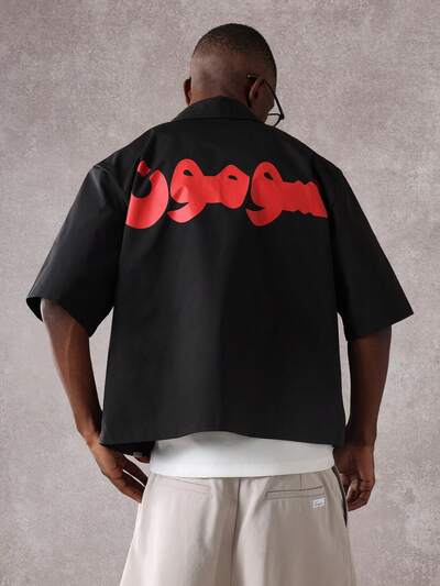 Oversized Japanese Script Short Sleeve Button-Up Shirt-50%