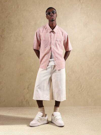 Oversized Checked Pattern Button Down Shirt-50%