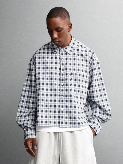 Boxy Check Print Collared Button Down Shirt With Back SloganNEW