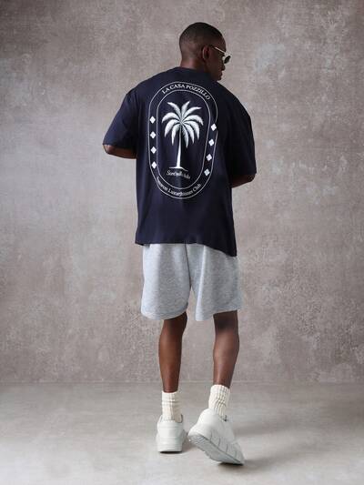 Oversized Palm Tree Print Men T-Shirt Co-OrdsOversized T-Shirt And Shorts Co-Ord Set With Script Logo