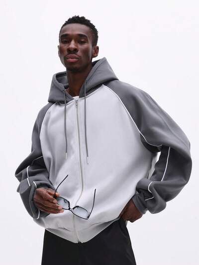 Full Zip Hoodie With Side Pockets And Paneled Design-35%