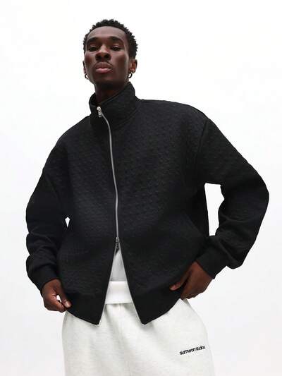 Houndstooth Textured Boxy Zip Hoodie-45%