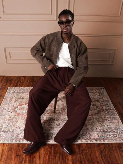 Wide Leg Loose Fit Trousers With Contrast Stitching-40%
