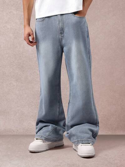 Baggy Paneled Wide Leg Jeans With Contrast Stitching-50%