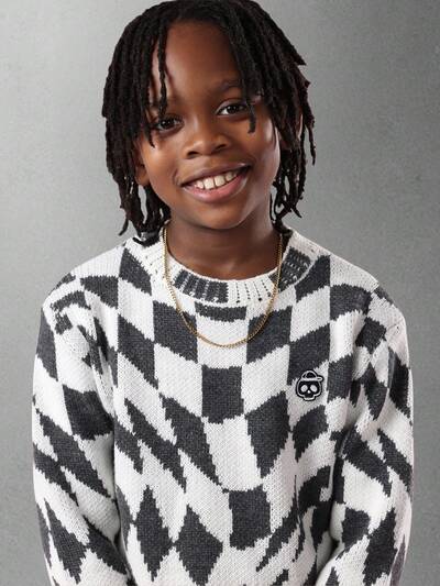 Knit Jumper With Athletic Department Graphics And Contrast Stripes