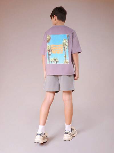 Tween Boys Brooklyn Slogan Coordinating Set Sage Green Oversized T-Shirt And Matching Shorts Casual Summer OutfitOversized Graphic Tee And Shorts Set
