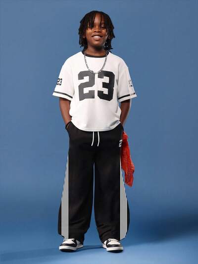 Sportswear Polo Top And Shorts Two-Piece OutfitVarsity Number T-Shirt With Wide Leg Track Pants