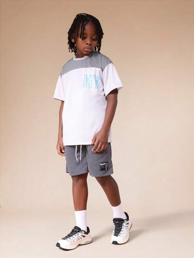 Champion Oversized T-Shirt Co-Ords Streetwear SportswearBoys Oversized Grey Star Print T-Shirt And Shorts Coordinate Set With Crew Neck Short Sleeves Soccer Inspired Design Casual Summer Outfit , World Cup
