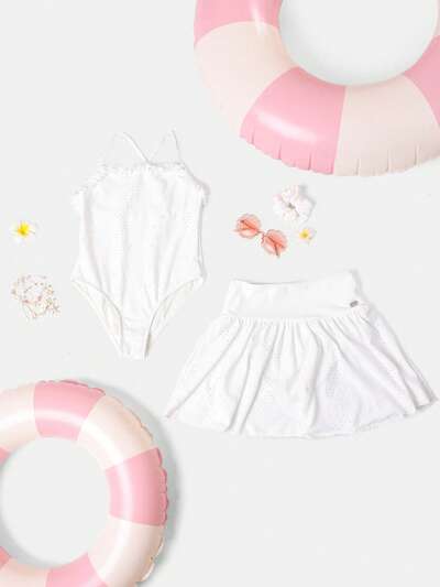 Broderie Anglaise Ruffled Skirted Bikini Set-20%