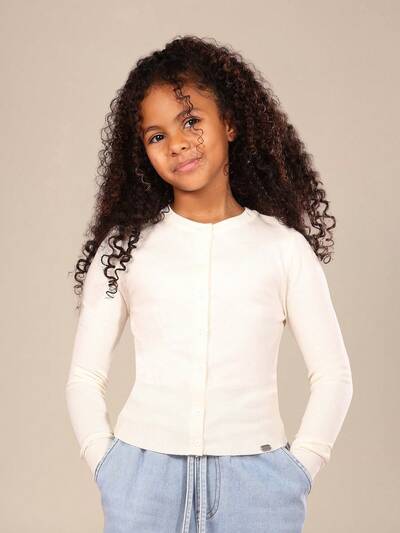 Button Front Ribbed Knit Cardigan With Long Sleeves