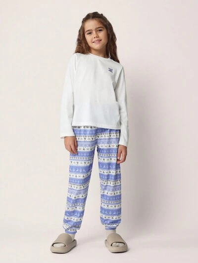 Long Sleeve Tee With Fair Isle Print Joggers Set-50%