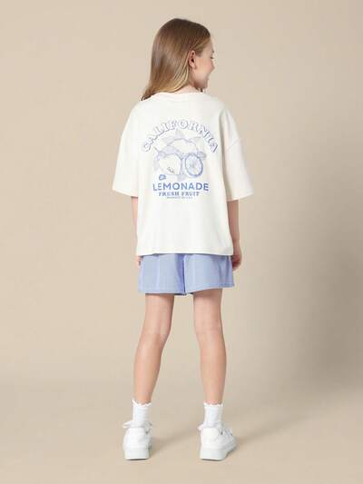 Lemonade Print T-Shirt With Striped Relaxed ShortsStriped Polo And Skirt Set With Print