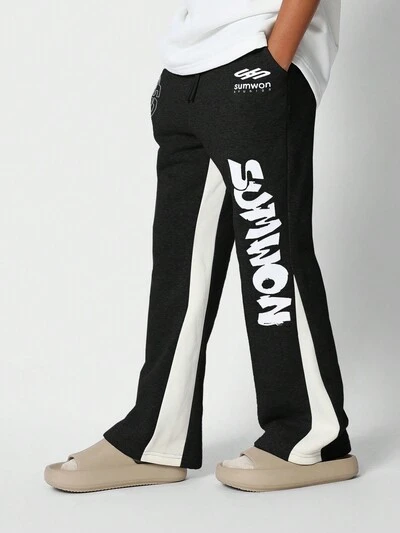 Tween Girl Comfy Flare Fit Contrast Colour Side Panel Sweatpants With Splatter Paint-50%