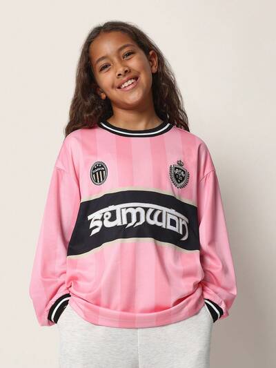 Tween Girls Comfy Oversized Long Sleeve Pink Football Tee With Graphic Print And Patch-50%