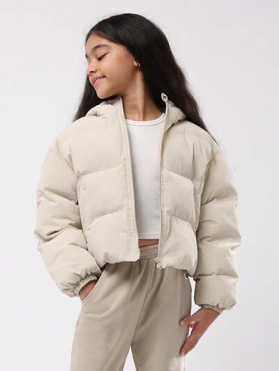 Cropped Hooded Quilted Puffer Jacket With Side Pockets