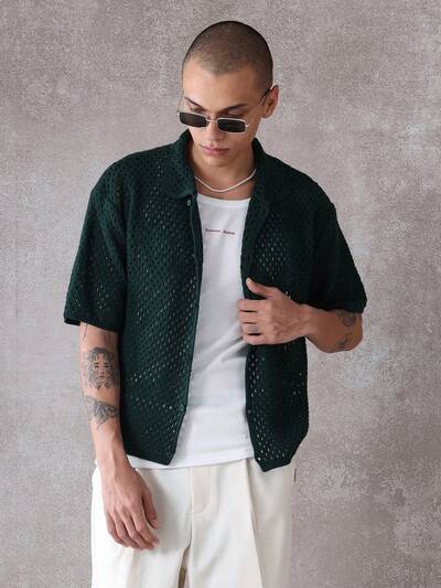 Regular Fit Diamond Pattern Crochet Shirt-50%