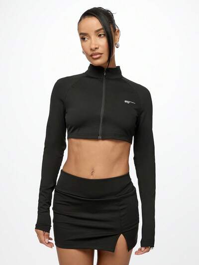 SUMWON WOMEN Sleek Performance Long Sleeve Crop Zip-Up Sport Top-20%