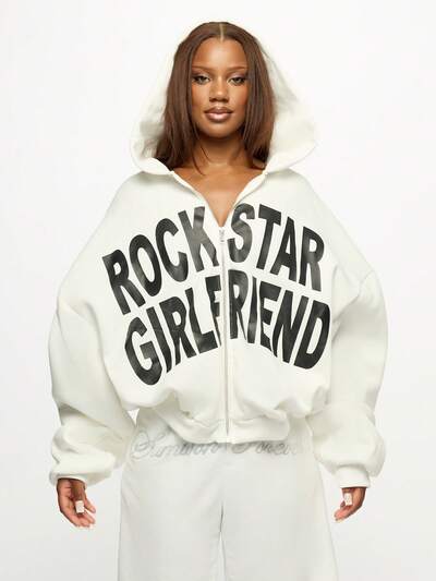 SUMWON WOMEN Oversized Graphic Hoodie With Text PrintBABYPHAT Women's Cropped Full Zip Track Sweatshirt With Front Text And Back Logo Design In Retro Style