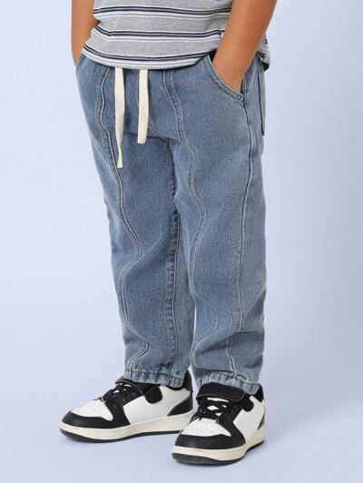 Slouchy Jeans With Wave Stitching And Drawstring Waist