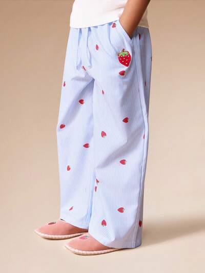 Wide Leg Striped Pants With Strawberry Print