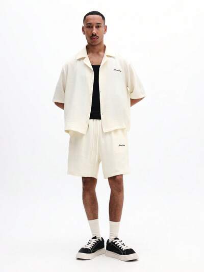 Summer Linen Feel Textured Short Sleeve Button Up Shirt With Matching Drawstring Shorts Co-Ord SetNEW