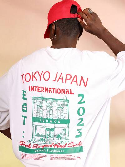 Short Sleeve Urban Sushi Print Graphic T-Shirt-30%